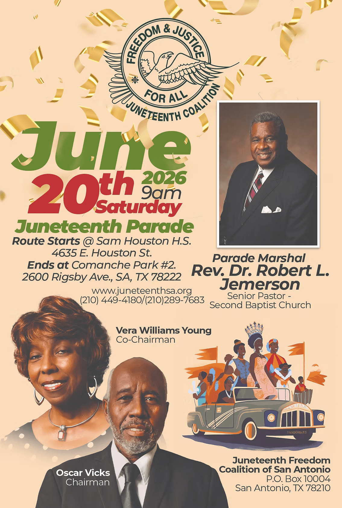 Contact Information for parade: Juneteenth Phone (210) 449-4180; Marsha Ridyolph (210) 842-7943,